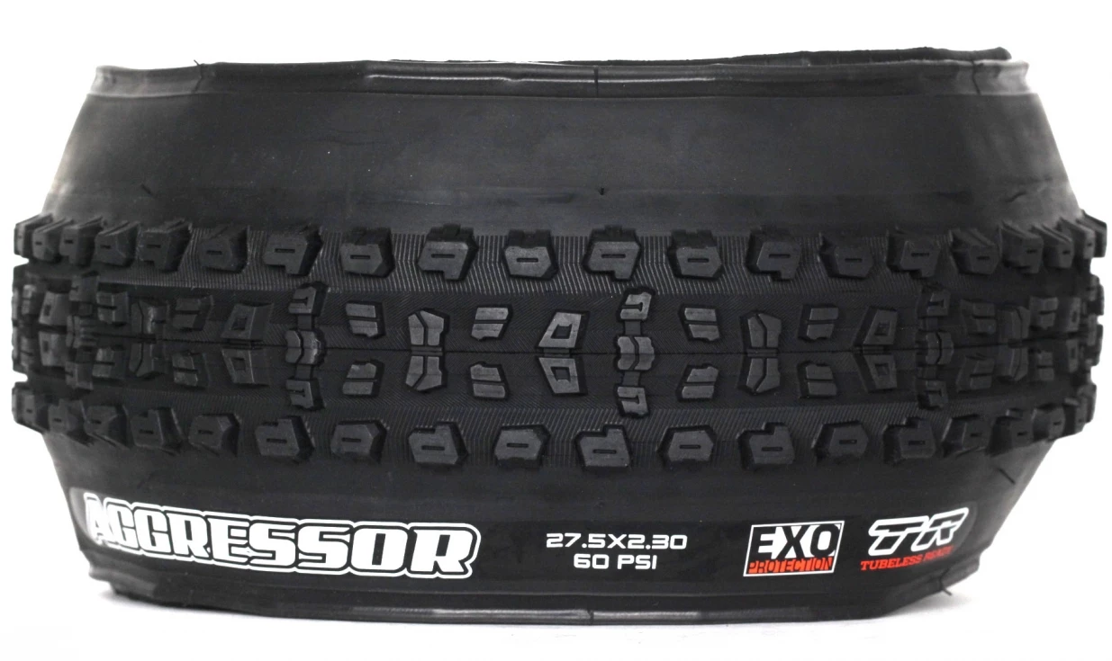 Nouveauté 2016, le Maxxis Aggressor a été développé pour répondre aux besoins des enduristes évoluants sur terrains durs à mixtes. Son profil est constitué de groupes de pavés, plus ou moins larges et disposés autour de la bande de roulement. Parfois fendus, parfois ajourés, leur forme et leur disposition permettent à la fois une excellente puissance de freinage, une grande traction, une faible résistance au roulement et une bonne stabilité.