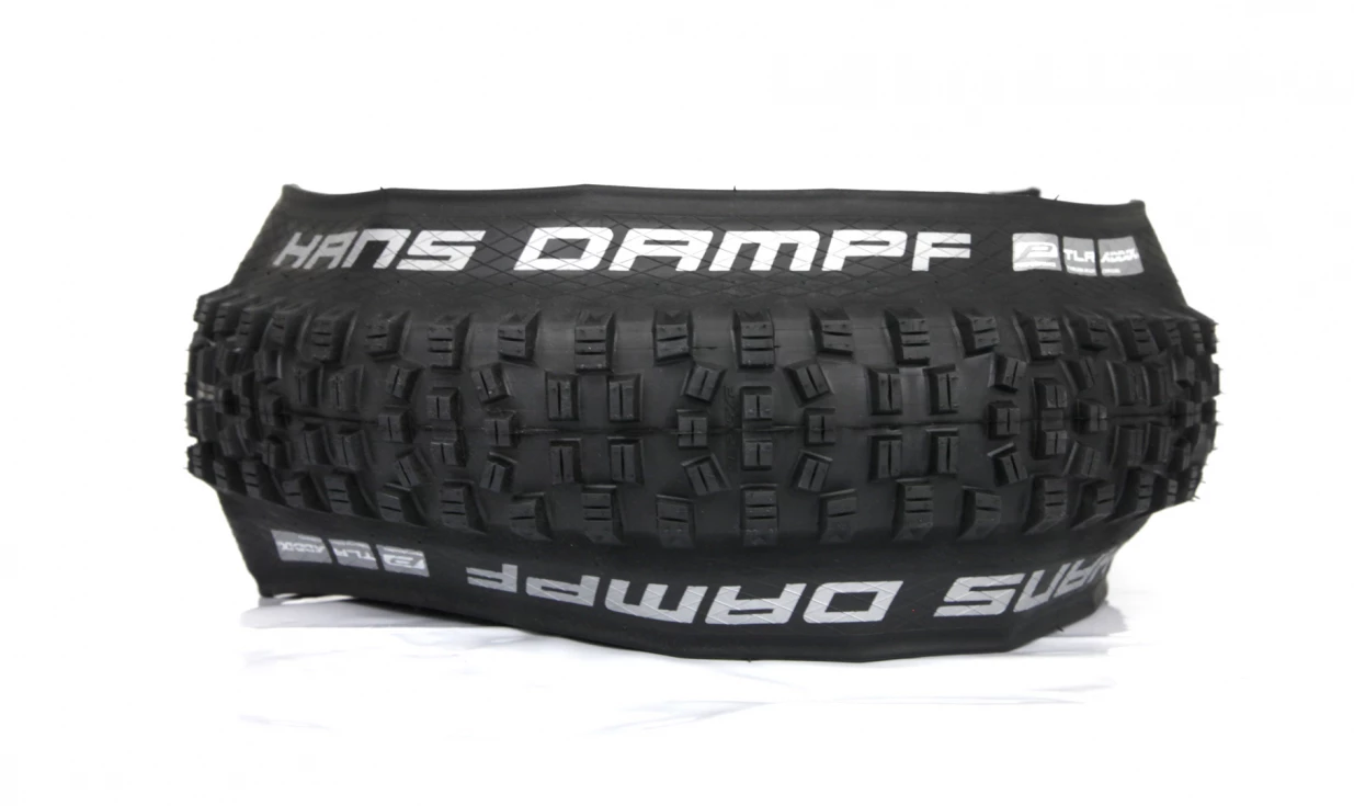 Schwalbe a redessiné le profil de son pneu Enduro le plus polyvalent. Le nouveau Schwalbe Hans Dampf est bien plus agresssif que le précédent modèle avec des crampons jusque 50% plus haut. Principalement utilisé à l’arrière jusqu’alors, le Hans Dampf fonctionne désormais très bien sur la roue avant comme sur la roue arrière en fonction des gommes sélectionnées et de la pratique. Les crampons latéraux ont été élargis pour permettre plus d’engagement. Il se positionne alors parfaitement entre le Nobby Nic et le Magic Mary au sein de la gamme Schwalbe. Au niveau de la bande de roulement, on retrouve des crampons longitudinaux qui procurent un excellent mordant au freinage. Le Hans Dampf se montre très polyvalent et demeure excellent à la montée. Ici en version Addix TwinSkin, il sera parfaitement adapté à une pratique Randonnée, AllMountain sportif en pratique loisir.