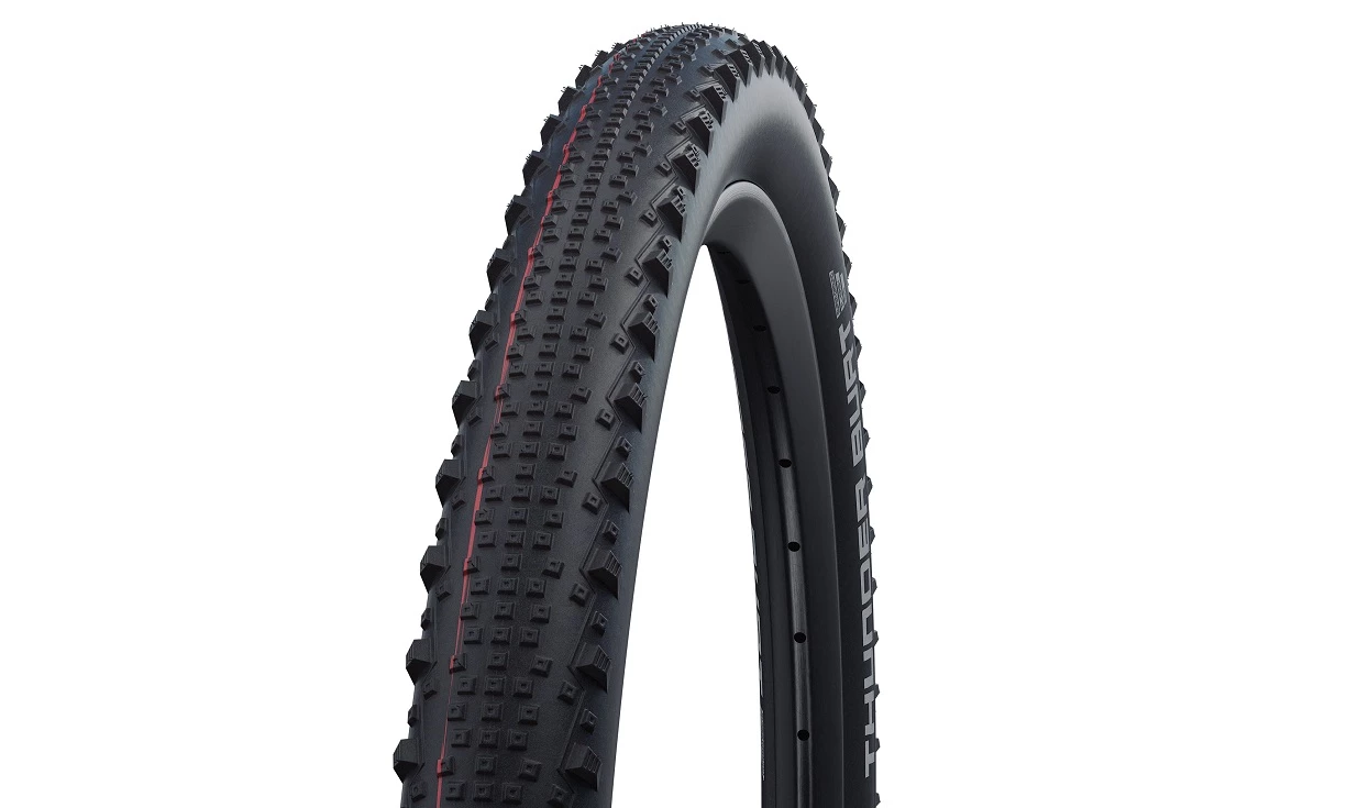 Le pneu VTT Thunder Burt Schwalbe est un pneu vélo conçu pour le XC. La marque a fabriqué ce pneu dans l’objectif d’en faire son pneu le plus rapide. Très léger, il ne pèse que 615 g. Il excelle sur les pistes rapides et sèches avec sa très faible résistance au roulement. En effet, la bande de roulement du Thunder Burt est pensée de manière à optimiser la vitesse. Le roulement est rapide et silencieux avec de petits crampons au centre. De nombreux points d’accroche ont été positionnés pour garder de l’adhérence sur sols durs. Enfin, les épaules sont cramponnées pour une bonne adhérence et un contrôle dans les courbes.