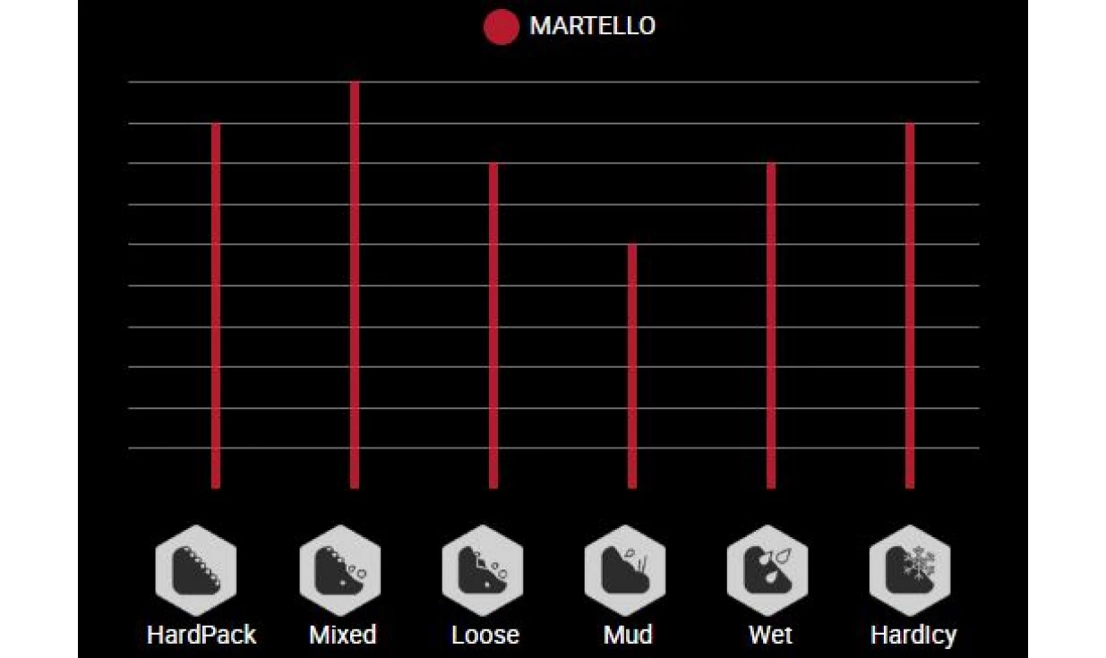 Le nouveau Vittoria Martello en version 2 nappes de 120 tpi destiné à une pratique VTT Enduro et VTTAE. Il allie avec brio robustesse, grip ainsi que de très bonnes aptitudes au roulement en raison de sa carcasse haute densité. Son profil aggressif constitué de gros pavés procure beaucoup de grip permettant d’évoluer sur les sentiers les plus techniques. Avec l’utilisation du graphène 2.0 les possibilités ont été démultipliées permettant d’obtenir des performances qui passent encore un cap par rapport à la première génération de graphène.
