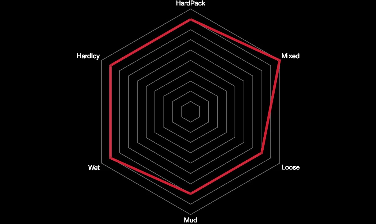 Les crampons les plus hauts de la bande de roulement possèdent une « rampe » en escalier. Ce design spécifique à Vittoria améliore la traction, en particulier à basse vitesse, en permettant au pneu de bien enfoncer dans les terrains souples. Là où un pneu à rampe lisse augmente la vélocité du pneu, le Mazza Vittoria suit parfaitement et roule tout aussi vite. Mais le pneu à rampe lisse dérapera bien avant le pneu avec crampons centraux en escalier, comme le Mazza. Une meilleure traction pour plus d’efficacité en montée comme en descente. Entre ces crampons en escalier, la bande de roulement présente des crampons bas carrés robustes pour assister le freinage.